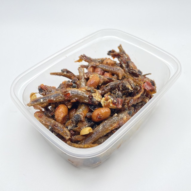 | Ingredienten | Ansjovis (vis), pinda, zout, suiker, trassi (schelpdieren), sambal oelek (chillipeper, voedingszuur (E260), conserveeringmiddel (E202)) plantaardige olie, laos. |